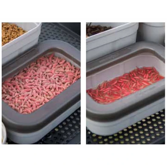 Rama suprapusa a capacului previne evadarea momelii vii si este deosebit de utila in timpul inmuiarii si pastrarii maggot-ilor, oferind protectie si confort in manipulare.