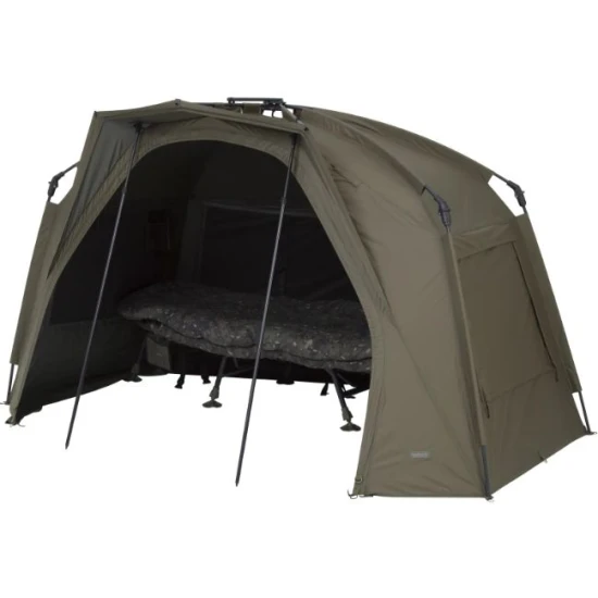 Trakker Tempest RS Brolly System este un cort de pescuit la crap care reprezinta o combinatie perfecta intre inovatie, functionalitate si durabilitate. Acest cort ofera pescarilor o solutie completa pentru a-si proteja echipamentul si a se bucura de confort in timpul sesiunilor de pescuit prelungite. Construit pe o structura robusta din fibra de sticla, Trakker Tempest RS Brolly System este usor de asamblat si ofera o rezistenta excelenta in fata conditiilor meteo variate. Materialul folosit pentru acoperis si pereti este impermeabil, oferind protectie impotriva ploii si a vantului, iar cusaturile etanse contribuie la mentinerea echipamentului uscat si in siguranta. Datorita designului sau inteligent, acest cort ofera o zona spatioasa si bine ventilata, cu o deschidere larga ce permite accesul usor si rapid la echipament si la zona de pescuit. Geamurile transparente din PVC ofera vizibilitate excelenta si permit pescarilor sa supravegheze linia la orice moment, fara a fi nevoiti sa iasa din cort.