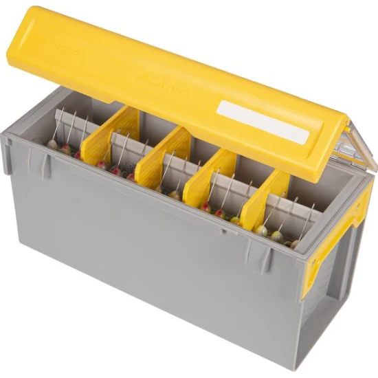 Pentru o utilizare cat mai usoara, cutia este dotata cu sistem de etichete EZ, capac transparent DuraView pentru identificarea rapida a continutului si un zavor supradimensionat care permite deschiderea si inchiderea cu o singura mana. Capacul si baza cu nervuri, alaturi de balamalele cu stift din otel, ofera durabilitate ridicata si o prindere sigura, atat acasa, cat si pe apa.