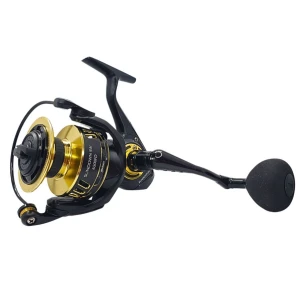 Acea rezistenta puternica este gazduita sub un tambur anodizat din aluminiu prelucrat cu un finisaj mat ce poate stoca pana la 270m de multifilament cu diametrul 0.40mm. Printre dotarile mulinetei regasim si angrenajele principale impreuna cu pinionul din otel inoxidabil prelucrat CNC ultradurabil ce vor asigura netezime si precizie de durata, pick-up supradimensionat si galet titanizat. Functia manuala de declansare a pickupului elimina inchiderea accidentala a acestuia in timpul lansarii iar butonul manerului supradimensionat cu invelis din material EVA este foarte confortabil. Atasat la o manivela din aluminiu prelucrat CNC, cu maner insurubat, foarte util in timpul drilurilor prelungite. Pentru pasionatii de somn, greutatea considerabila de aproape 525g a mulinetei este o optiune demn de luat in seama. Pe scurt, daca sunteti fani ai pescuitului la somn sau al pescuitului marin, aceasta mulineta va fi cu siguranta una dintre preferatele tale. Designul negru mat, in combinatie cu detaliile cu finisaje de culoare aurie ofera mulinetei un aspect modern.