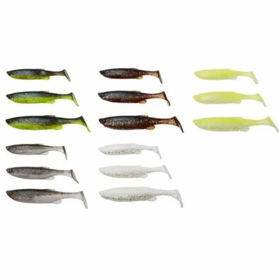 Kit complet cu marimi si culori atent alese ale shad-ului Savage Gear Fat Minnow T-Tail, recunoscut pentru eficienta ridicata, impreuna cu capete de jig compatibile. Pachetul include 30 de shad-uri Fat T-Tail (10 bucati din fiecare dimensiune, cate 2 din fiecare culoare) si 6 capete de jig, oferind o solutie versatila pentru diverse situatii de pescuit.